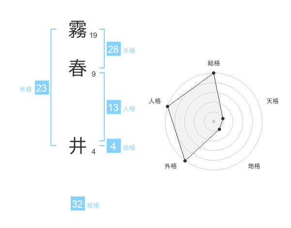 霧春 井さんの外格は23画の5点!