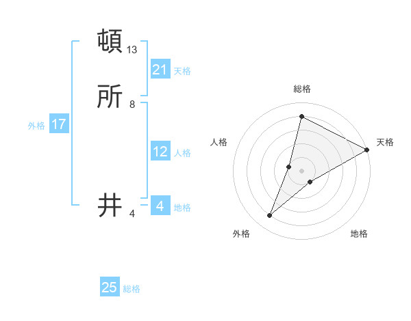 頓所 井さんの天格は21画の5点!