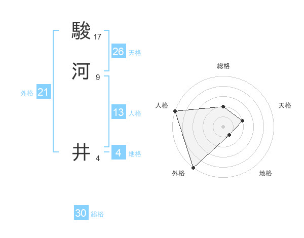 駿河 井さんの総格は30画の2点!