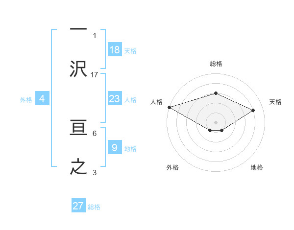 一沢 亘之さんを姓名の画数から五運を鑑定