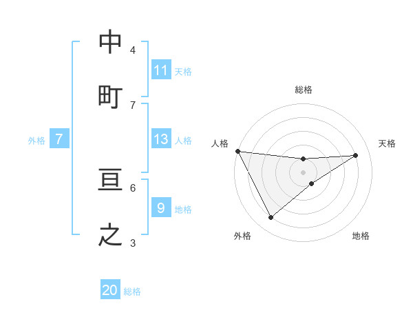 中町 亘之さんの外格は7画の4点!