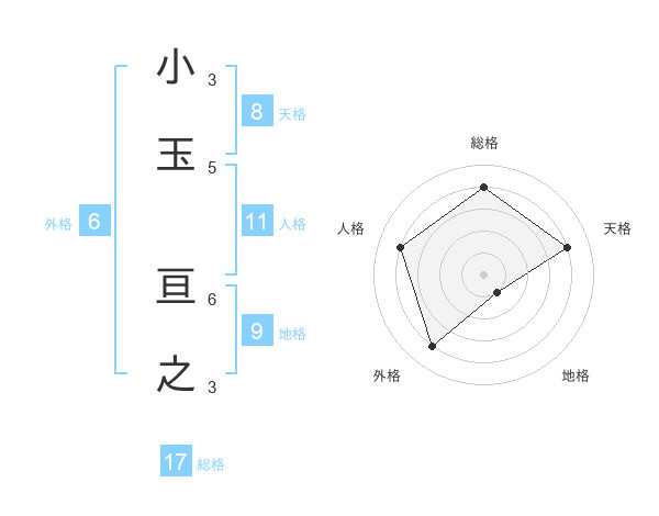 小玉 亘之さんを姓名の画数から五運を鑑定