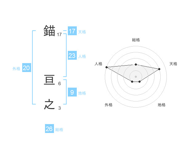 錨 亘之さんの外格は20画の1点!