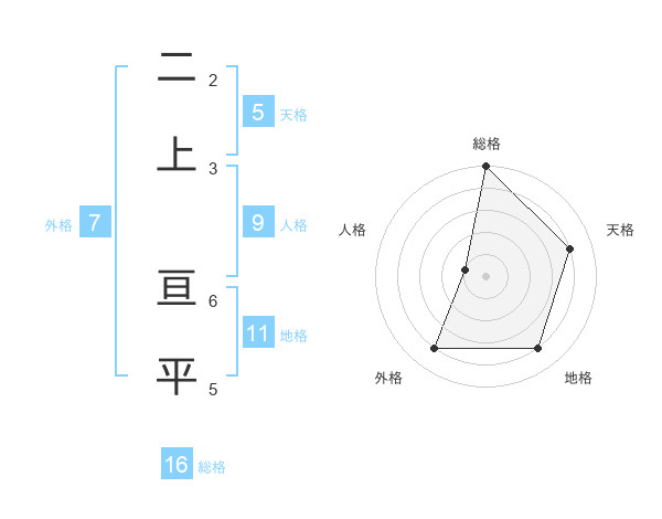 二上 亘平さんの総格は16画の5点!