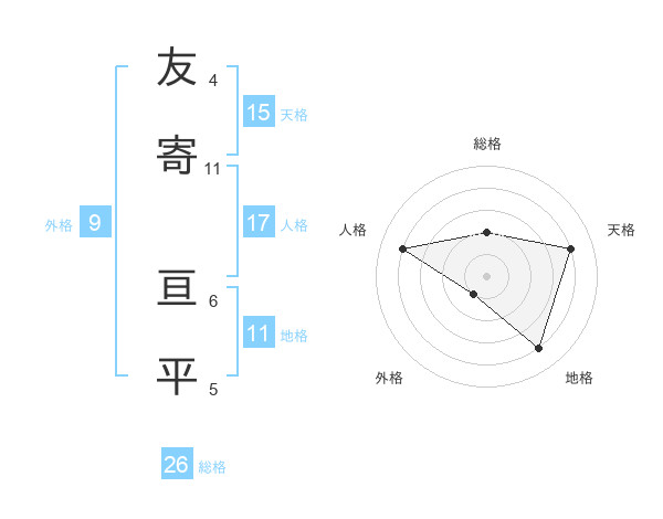 友寄 亘平さんを姓名の画数から五運を鑑定