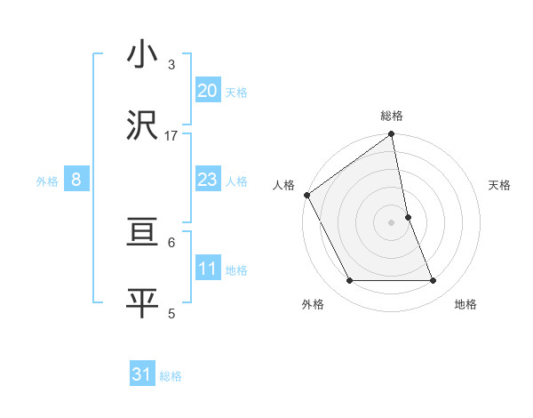 小沢 亘平さんの総格は31画の5点!