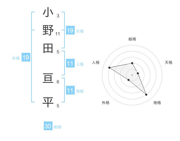 小野田 亘平さんの総格は30画の2点!