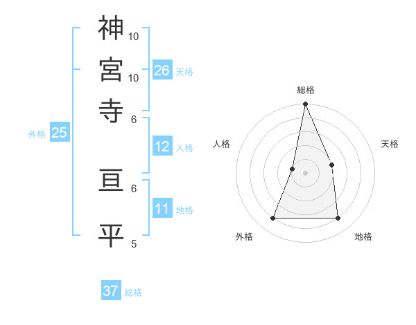 神宮寺 亘平さんを姓名の画数から五運を鑑定