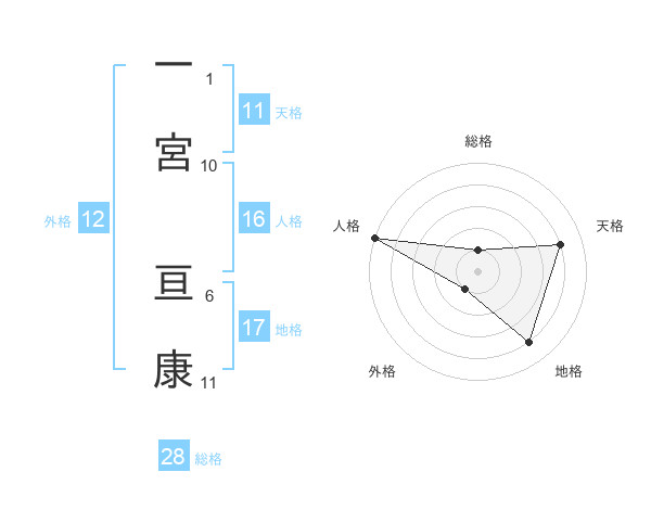 一宮 亘康さんの総格は28画の1点!