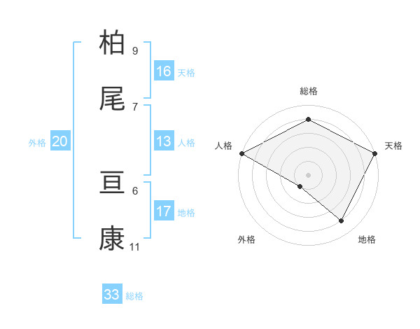 柏尾 亘康さんを姓名の画数から五運を鑑定
