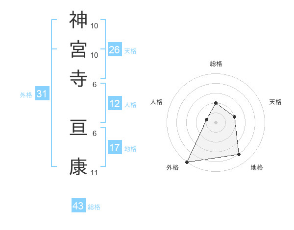 神宮寺 亘康さんの外格は31画の5点!