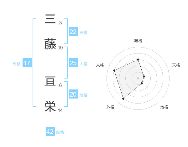 三藤 亘栄さんを姓名の画数から五運を鑑定
