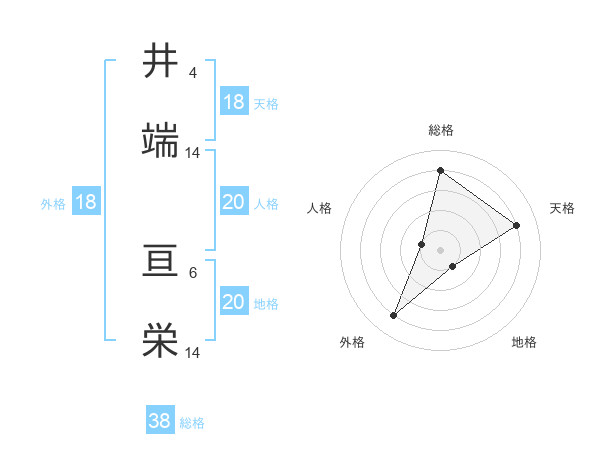 井端 亘栄さんの総格は38画の4点!
