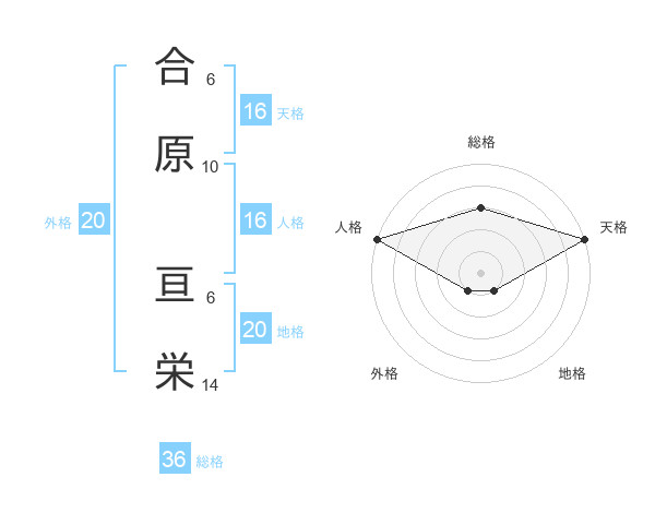 合原 亘栄さんの地格は20画の1点!