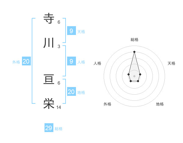 寺川 亘栄さんの総格は29画の4点!