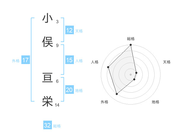 小俣 亘栄さんを姓名の画数から五運を鑑定