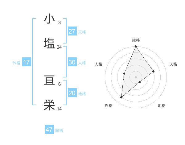 小塩 亘栄さんの総格は47画の5点!
