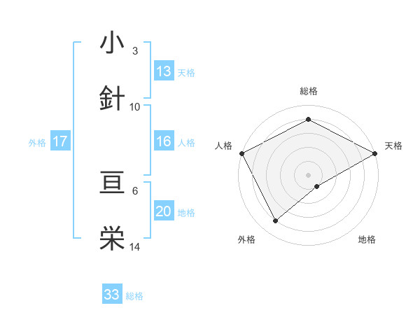小針 亘栄さんの総格は33画の4点!