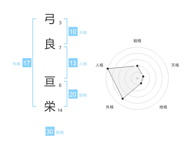弓良 亘栄さんを姓名の画数から五運を鑑定