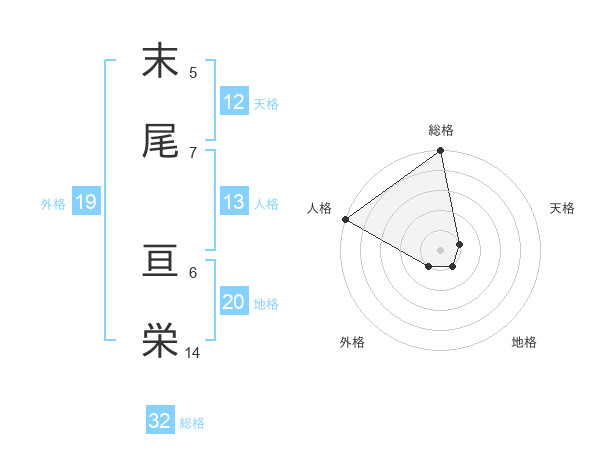 末尾 亘栄さんの総格は32画の5点!