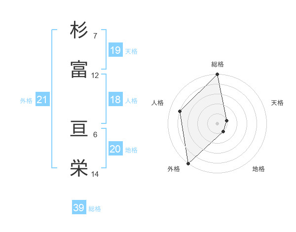 杉富 亘栄さんを姓名の画数から五運を鑑定