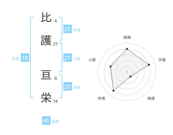 比護 亘栄さんの総格は45画の4点!