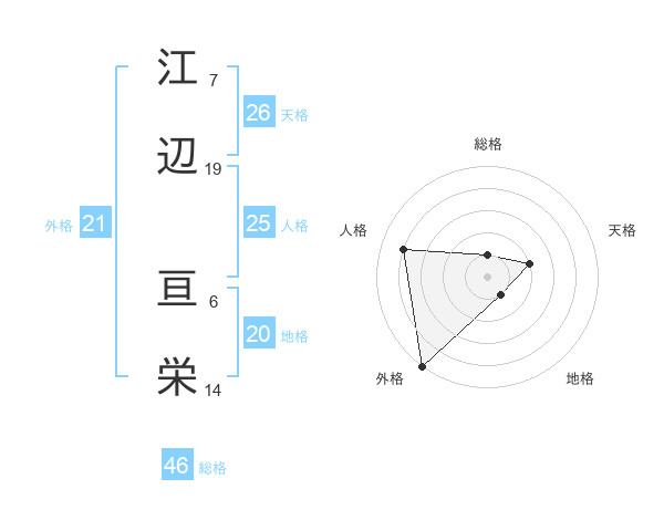 江辺 亘栄さんの総格は46画の1点!