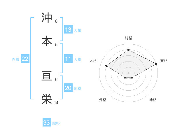 沖本 亘栄さんを姓名の画数から五運を鑑定