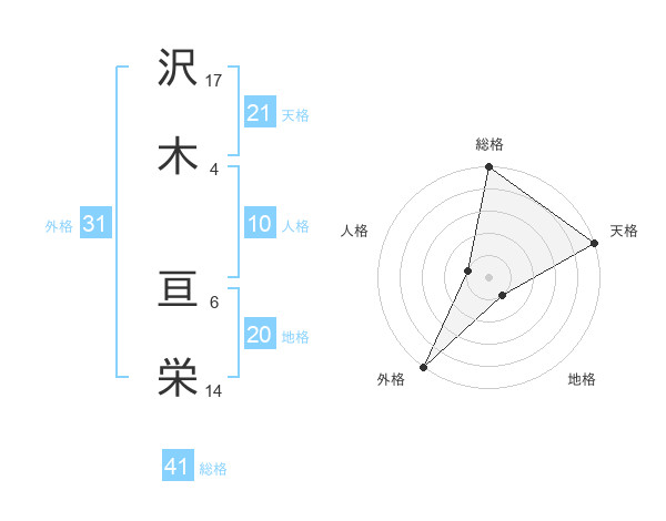 沢木 亘栄さんの総格は41画の5点!