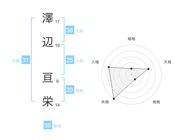 澤辺 亘栄さんの外格は31画の5点!