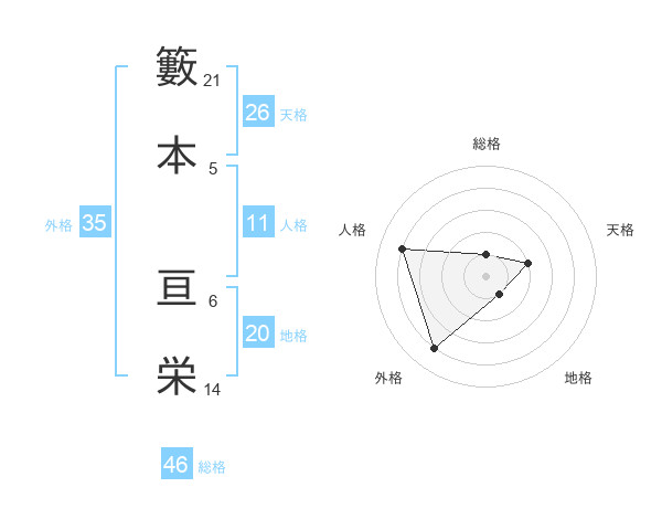 籔本 亘栄さんの天格は26画の2点!