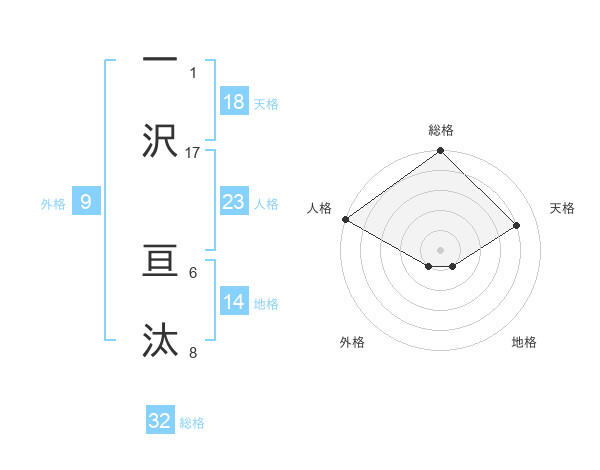 一沢 亘汰さんを姓名の画数から五運を鑑定