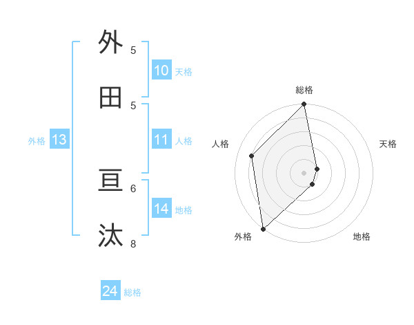 外田 亘汰さんを姓名の画数から五運を鑑定