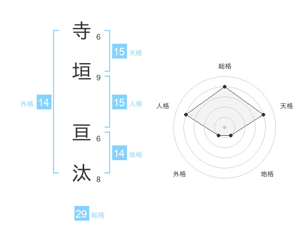 寺垣 亘汰さんの天格は15画の4点!