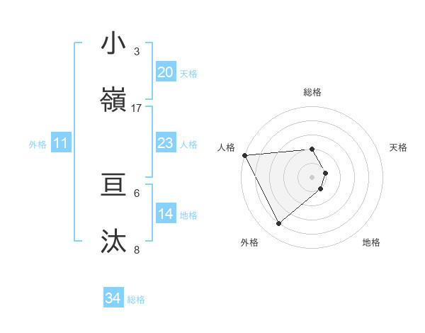 小嶺 亘汰さんの総格は34画の2点!