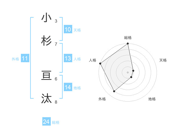 小杉 亘汰さんの総格は24画の5点!