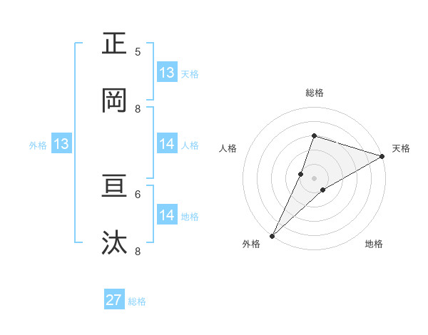 正岡 亘汰さんを姓名の画数から五運を鑑定