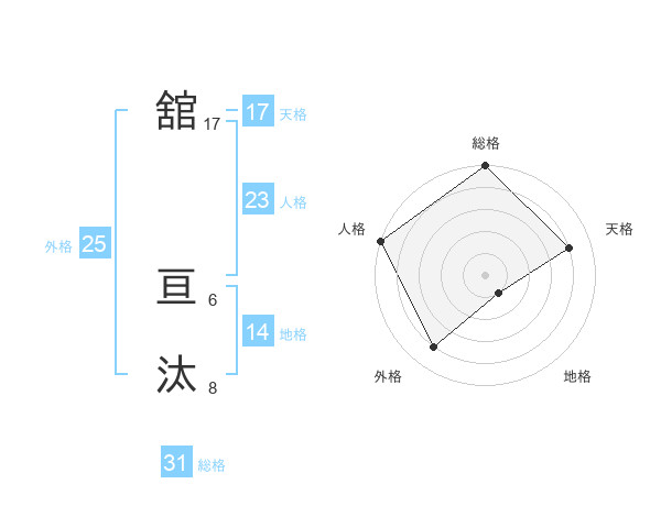 舘 亘汰さんを姓名の画数から五運を鑑定