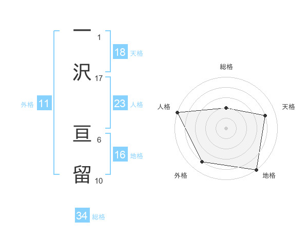 一沢 亘留さんを姓名の画数から五運を鑑定