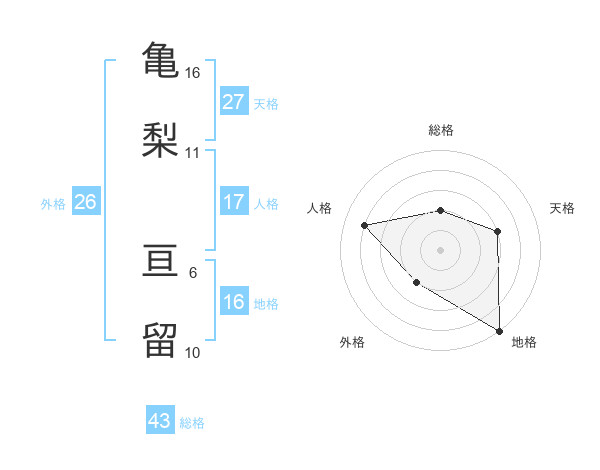 亀梨 亘留さんの総格は43画の2点!
