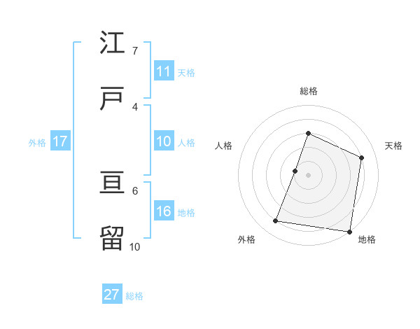 江戸 亘留さんの地格は16画の5点!