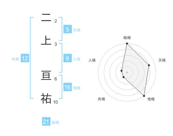 二上 亘祐さんの総格は21画の5点!