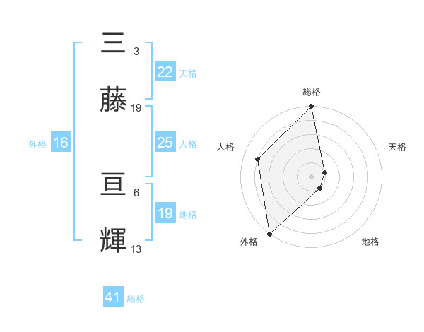 三藤 亘輝さんを姓名の画数から五運を鑑定