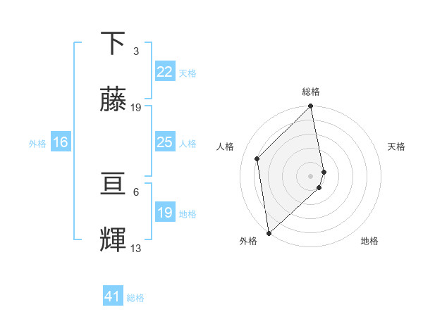 下藤 亘輝さんを姓名の画数から五運を鑑定