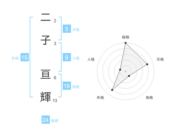 二子 亘輝さんの総格は24画の5点!