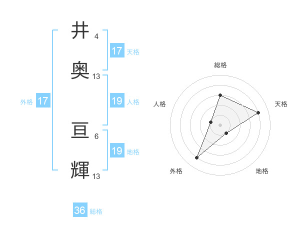 井奥 亘輝さんの天格は17画の4点!