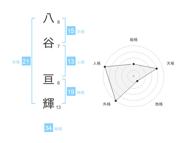 八谷 亘輝さんの天格は15画の4点!