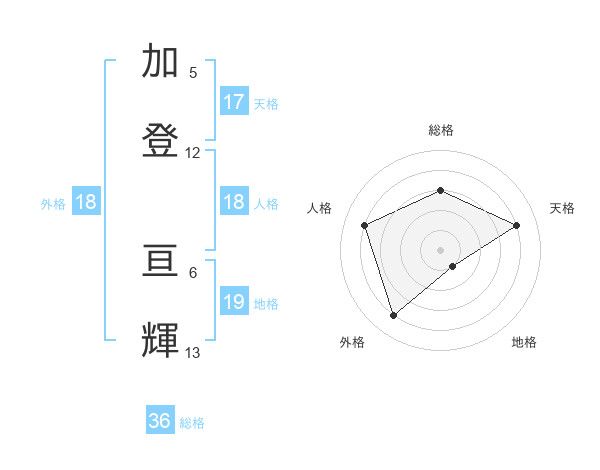 加登 亘輝さんを姓名の画数から五運を鑑定