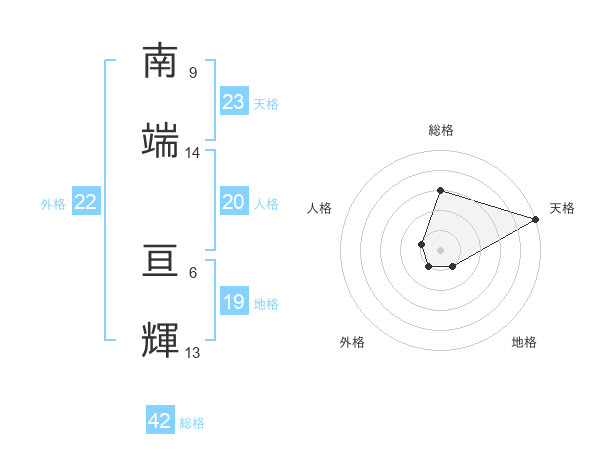 南端 亘輝さんを姓名の画数から五運を鑑定