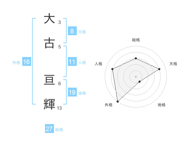 大古 亘輝さんを姓名の画数から五運を鑑定